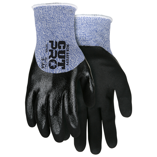 The MCR Safety Cut Pro Series offers various cut protection levels at a competitive price. The 92753 features a 13-gauge blue and white Hypermax cut resistant shell that has two coatings.  The glove's first coating is an over the knuckle flat nitrile dip that offers strength and support while the second coating is a foam nitrile that covers the palm and fingers of each glove. The flat nitrile offers good water and oil resistance and the foam nitrile offers excellent wet and dry grip and abrasion resistance.  The black polymer color also hides dirt, grit and grime which helps keep the glove looking good longer.   Looking for the best cut resistant gloves?  Look no further than MCR Safety's Cut Pro cut resistant options.