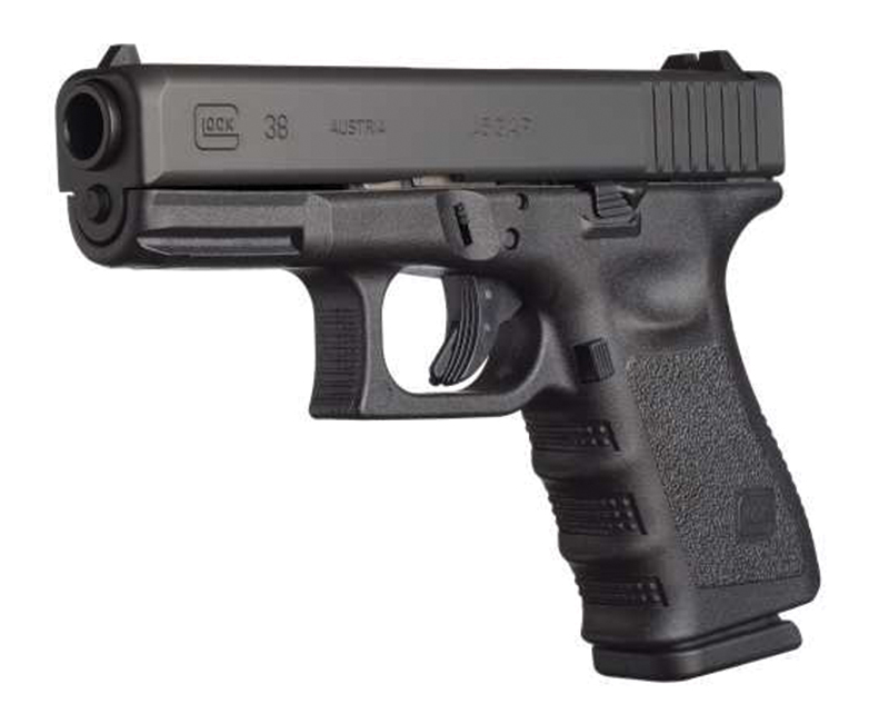 Glock, MFG# PI3850201, UPC: 764503385025, UOM: EA, G38, 45 Glock, 4" Barrel, Fixed Sights, Black, 2 8-rd Mags, GLOC, GLOCHG10, GLOCHGALL, HG10, HGALL