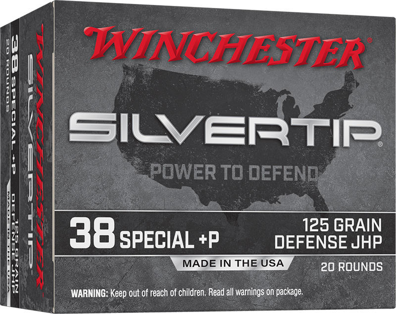 Winchester Ammunition, MFG# W38PST, UPC: 20892231580, UOM: BOX, Silvertip, .38 Special +P, 125 Grain, Defense JHP, 20/Box, WINC, WINCAM40, WINCAMALL, AM40, AMALL, Case:10