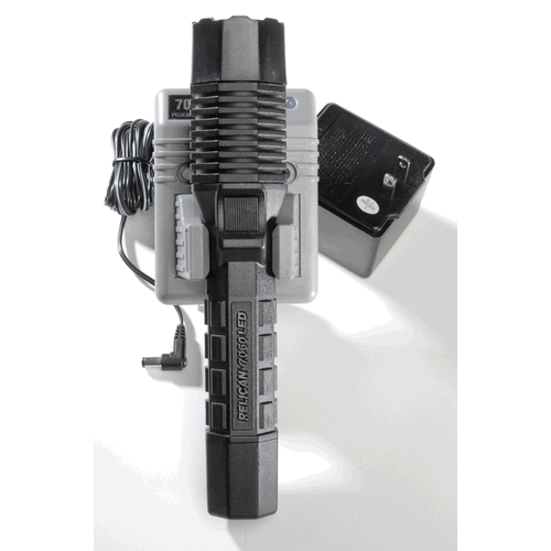 The Pelican 7060 LED light employs new dual switch technology that allows the light to be activated by either a body-mounted patrol switch or a tail-mounted tactical switch. The dual switches, which include a momentary mode, allows the user to grip the flashlight in several positions and still control activation. The light incorporates rechargeable Lithium-Ion batteries for maximum brightness and are also light weight compared to standard batteries.