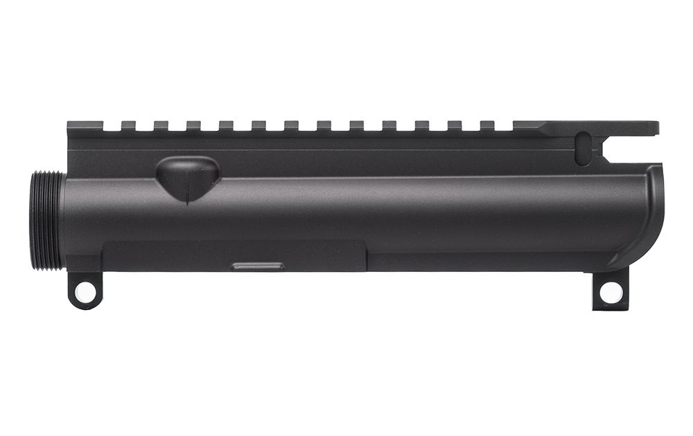 Note: The no-forward assist upper receivers use a custom forging designed to work specifically with mil-spec port doors. It may not work with aftermarket port doors. Features: M4 Feedramps .250 takedown pin holes Lazer engraved T-marks No forward assist provisions Includes: AR15 Stripped Upper Receiver Without Forward Assist in Anodized Black SPECS Specs Made In America? Yes Platform AR15 Material Machined from 7075-T6 forged aluminum Finish Anodized Black Compatibility Works with standard AR15/M16 components Weight(s) 6.5oz Other No forward assist provisions
