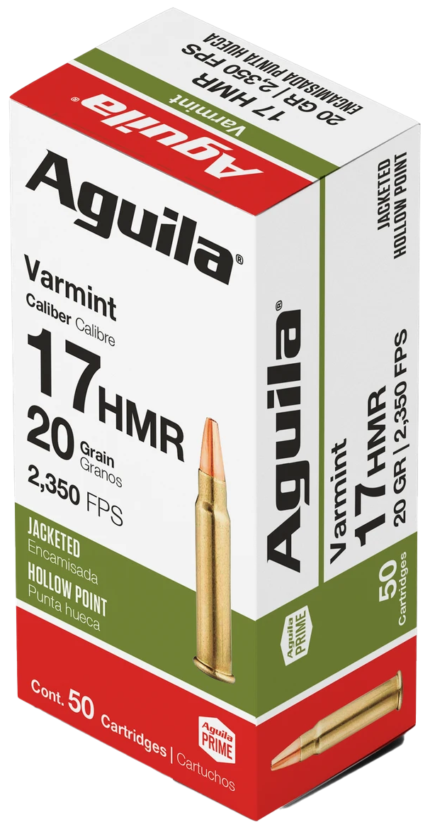 Aguila's 17 HMR is the perfect solution for varmint hunters looking for an effective round. Its unique design allows for the bullet to expand like a big game bullet, providing heavy, knockdown power on impact.