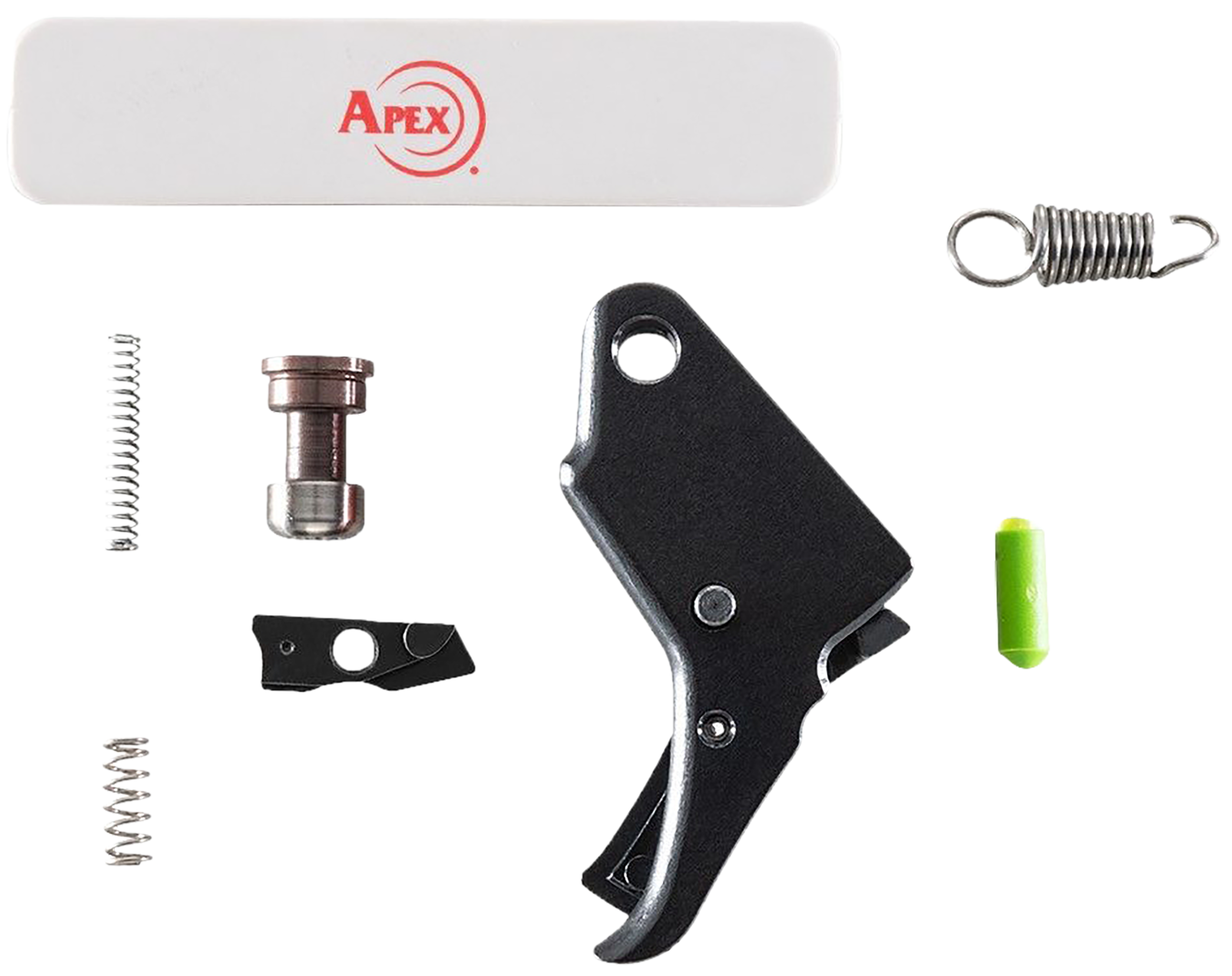 This kit is a combination of the Apex Duty/Carry Kit for the M&P Shield 2.0 and the Apex Action Enhancement Trigger for the M&P Shield 2.0. The Trigger Kit directly replaces the factory hinged trigger with a solid aluminum trigger body which reduces pre-travel and over-travel by approximately 20%. It features a smooth face with a center-mounted pivoting safety that maintains factory safety values. The Apex Duty/Carry Kit was designed to provide the M&P Shield 2.0 pistol owner a smooth, consistent trigger pull that is approximately 1-2 lbs lighter (based on variations in factory tolerances and the combination of springs used) with the advantages of shorter over-travel and more detectable trigger reset. However, armorer or gunsmith installation of the Ultimate Striker Block (USB) into the Shield slide is strongly recommended.
