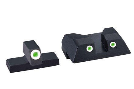 APX Night Sights Kit feature tritium gas-filled lamps with a sapphire front lens which focuses light and is impervious to solvents. The sapphire lens-enhanced tritium vial, is one of the brightest in the industry. The gas-filled lamps are silicone cushioned to take years of use and come with a full warranty. Matte.