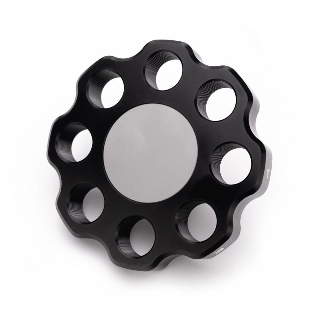 One of the beautiful parts of the ZERO is the ability to set up dies and not remove them simply rotate or replace your turret to get to another die. With the addition of extra turrets there is virtually no limit to the number of calibers you can set up to run on the ZERO and changing a turret takes about 20 seconds. Turret replacement is also repeatable to under .001″. All turrets will come with a press-fit pull-stud and die stations laser marked with a number on the outer diameter of the head.