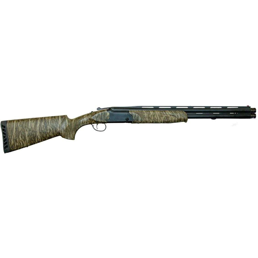 20 guage, 3" chamber 22" over under shotgun. Synthetic Mossy Oak Bottomland camo furniture. Black barrels include a Fiber optic sight on a 10mm vent rib and XF and Modified extended chokes included. Single selective trigger on the black receiver.