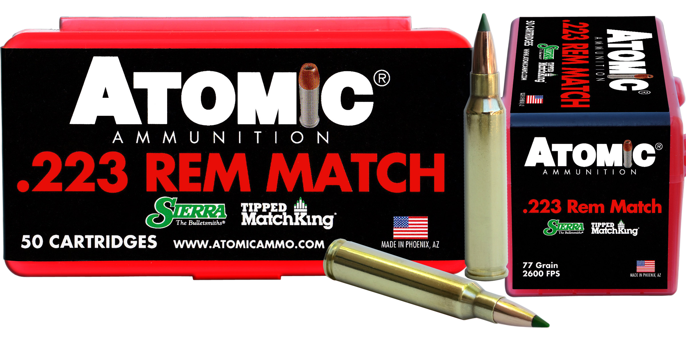 Atomic's Match grade ammunition is made with the best components available. The bullet is carefully selected based on its unique weight and aerodynamic quality which gives it a superior ability to achieve sub minute of angle results at both short and long range distances.
