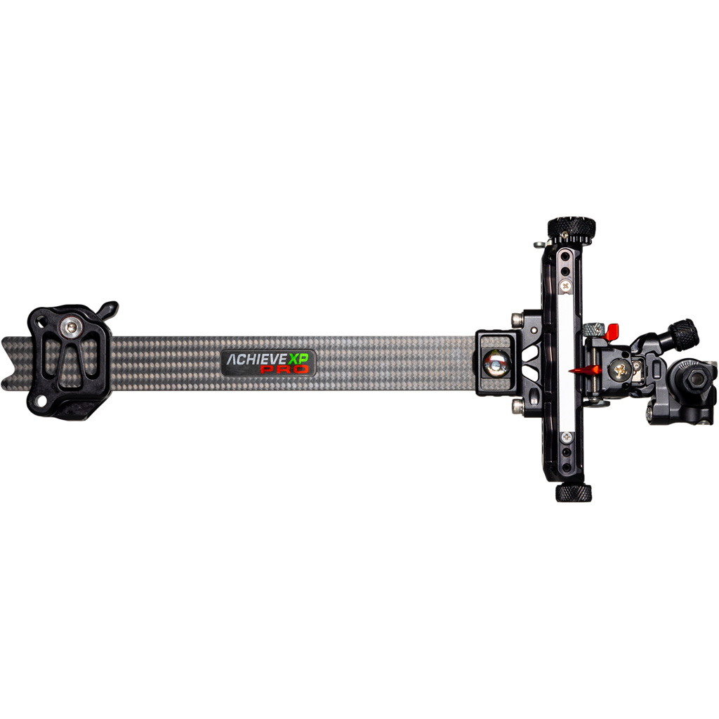 The Axcel Achieve XP Pro Carbon Bar Compound is a top-tier archery sight featuring Advanced Vibration Dampening (SVD) and Zero Backlash design for unmatched precision. Its single-screw tension adjustments allow precise settings on both windage and elevation. The sight incorporates a Diamond Weave carbon bar that reduces vibrations by 50 percent, coupled with a robust wedge lock bow mount bracket using Dual Bridge Technology. This model is specifically tailored for compound bows, enhancing performance across all levels of competitive archery.
