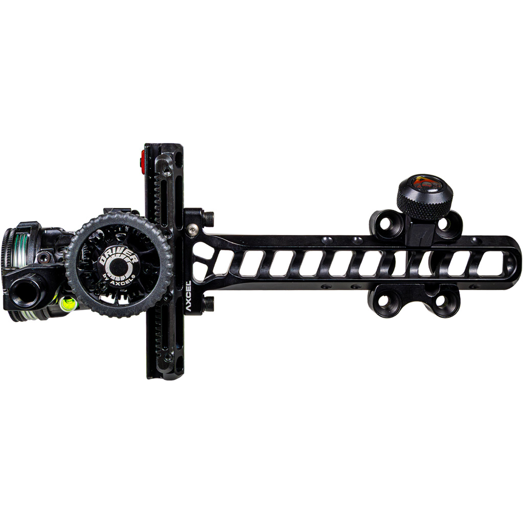 The Axcel Driver Plus Slider Sight with AVX-31 Scope in Stealth Black is engineered for the mobile, precision-focused archer. At just 8.6 ounces, this left-hand dovetail-mounted sight is the lightest slider on the market, delivering top-tier performance without sacrificing durability. The .019" green fiber single pin sits within the AVX-31 scope housing, which includes rheostat light control and a micro-adjustable deadstop for quick yardage resets. The large elevation wheel, smooth gear movement, and minimal hardware design all contribute to fast, intuitive adjustments.