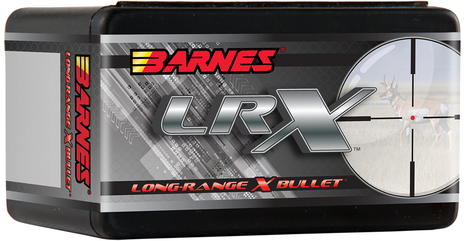 Barnes LRX (Long-Range X) bullets have been developed to match the advancements in rifle accuracy and extended-range optics. Designed after the TTSX, the LRX is manufactured with a polymer tip for quick expansion, and a copper body featuring a long profile and boattail design for match-grade accuracy at long range with an incredibly high ballistic coefficient and terminal performance that delivers the quick, clean, ethical kills you've come to expect from Barnes.