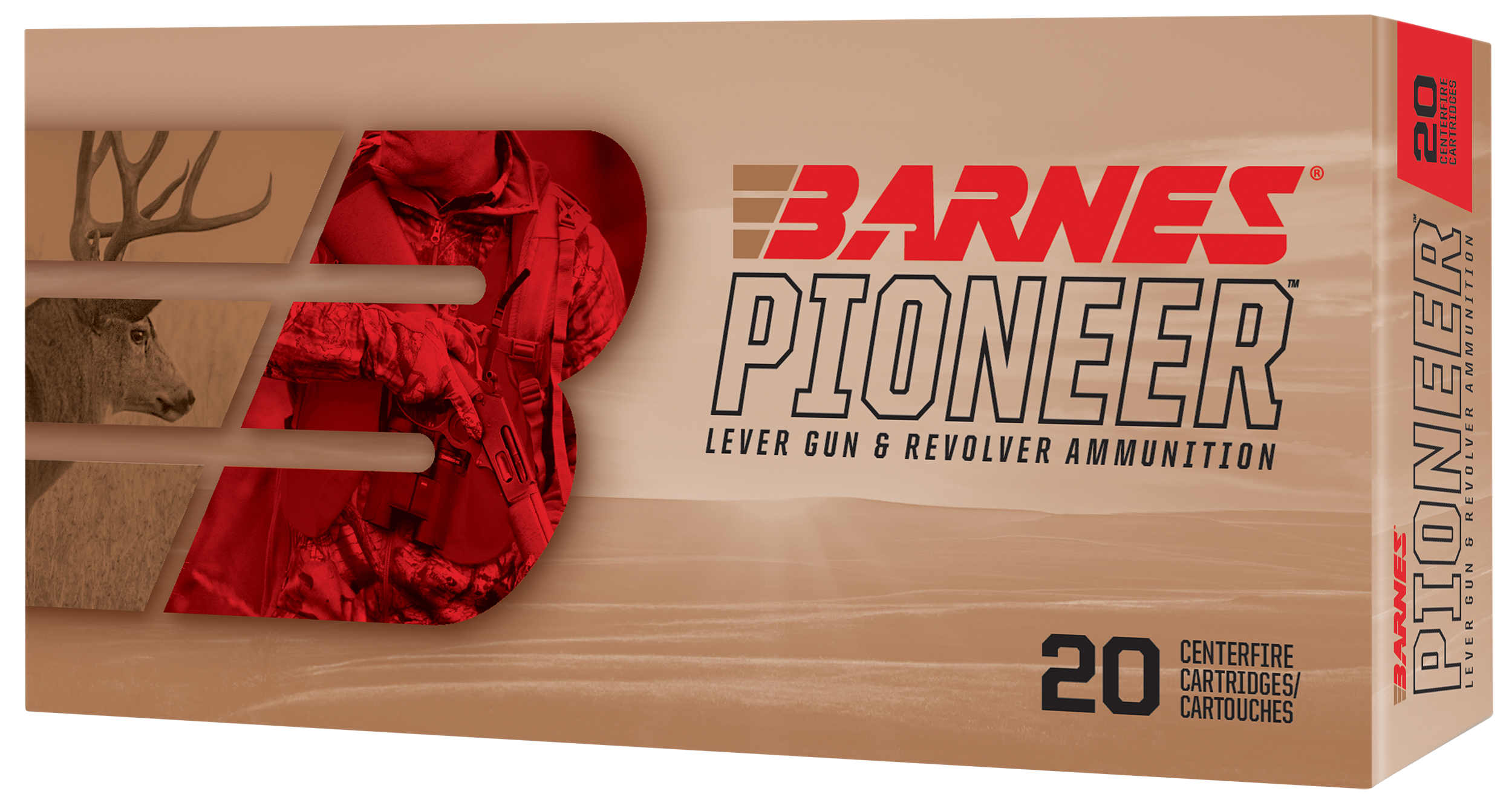 Barnes Pioneer ammunition is designed for lever guns and revolvers. This ammo is carefully loaded for terminal performance and delivers massive expansion and weight retention for deeper penetration.