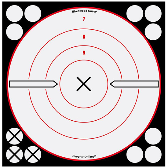 Capture the same Shoot-N-C experience in white and black. The contrast of white over black makes an excellent indoor target. The black halo can easily be seen at many distances. When used indoors or outdoors the white over black colors make seeing your crosshairs and open sights very easy. The added posts on the 8 and 12 inch targets make for great crosshair reference points. And don't forget each target comes with value-added repair pasters to extend the life of your target by repairing bullet holes or as extra aiming points. - 8 Wht/Blk Bull's-Eye X 6 Targets 72 Pasters - Bullet holes are revealed with a black ring. - Self-adhesive backing makes targets easy to put up. - Great for indoor or outdoor use and low-light conditions. - Includes repair pasters to lengthen target life.