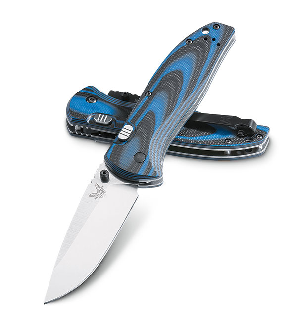 Plain Edge Satin Silver Blade/ Blue and Black G10 Handles