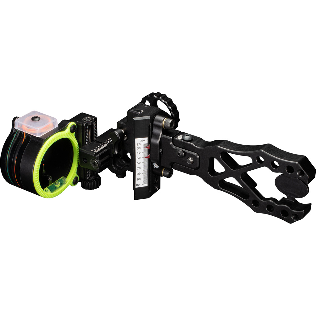 The Black Gold Pro Dual Track Sight combines a two-pin head with visibility akin to a single pin. The sight has a housing size of 1-3/4" and a 4-inch Dovetail base. It features comprehensive adjustability with vertical and horizontal gang click micro adjustments and 2nd pin micro-adjustments. This model is crafted for adaptability with adjustable 1st, 2nd, and 3rd axis, finished in sleek black.
