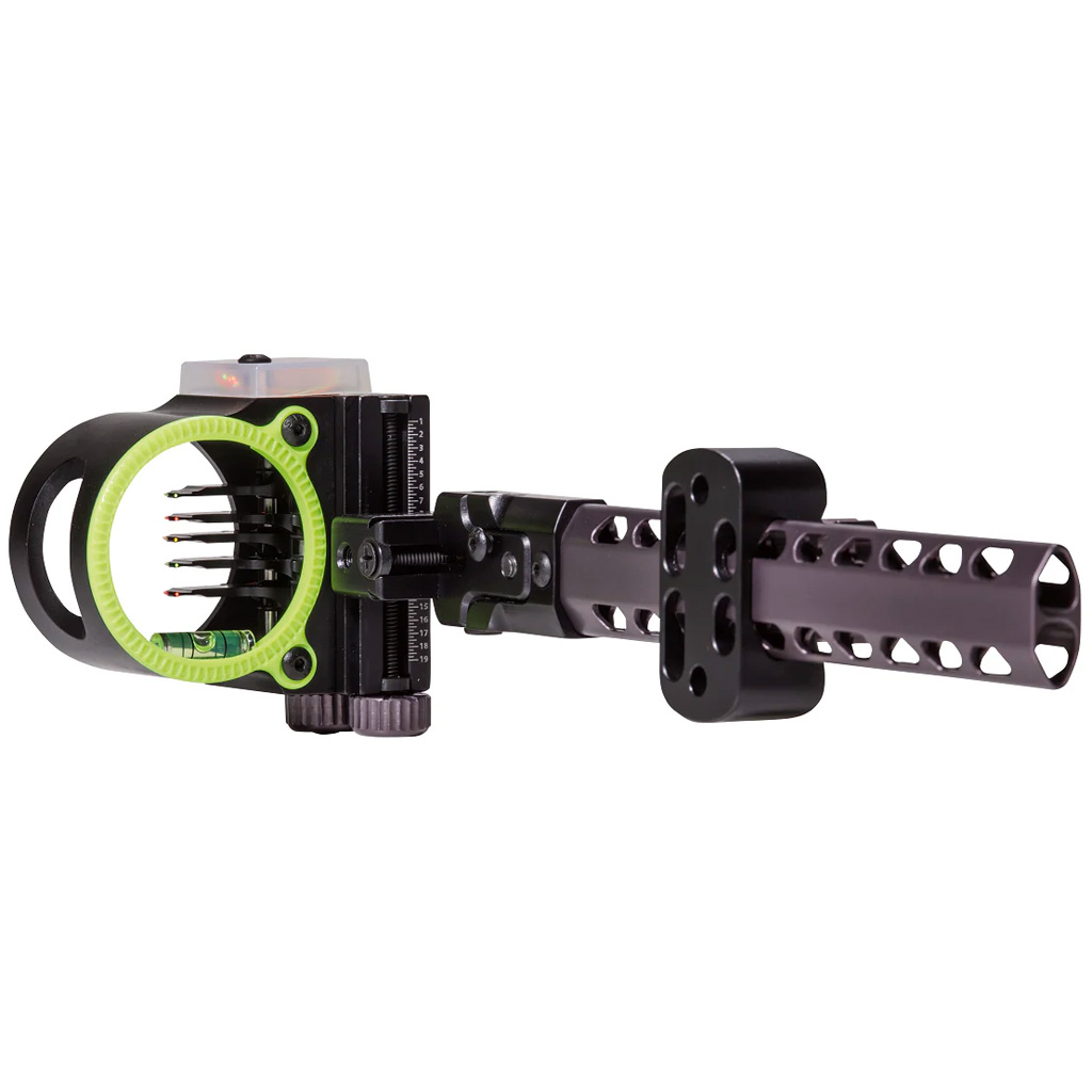 This archery sight is a fixed 5-pin setup designed for right-handed users with .019 Micro-Adjustable Pro Pins for ultra-fine tuning. The Pro FX 5 boasts micro-adjustable settings for windage, elevation, and 3rd axis, providing archers the flexibility to quickly and accurately fine-tune their shot placement. With its innovative PhotoChromatic shell, the sight adapts to varying light conditions to maintain pin clarity. Additionally, the sight can be equipped with a 2X or 4X lens, making target acquisition even clearer. With a compact housing size of 1.75 inches and a weight range of 9 - 9.6 ounces, this sight affixes to your bow via a 6" Wing Truss mount for a secure, stable fit, optimizing your hunting and target shooting experience.
