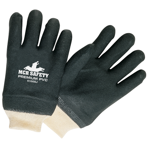 These gloves kick PVC protection up a notch. Two layers of sandy textured PVC offer toughness and abrasion resistance you'll need on the job.  Glove lengths in this premium series range from knit wrist options to 14 inch gauntlet cuff options.  The 6100SJ is double dipped in black PVC, has a sandy finish, jersey lining, and is treated with ActiFresh to help prevent odors and eliminate bacteria caused by perspiration.  Looking for the best PVC coated work gloves?  Don't settle for the rest, but get the best with MCR Safety!