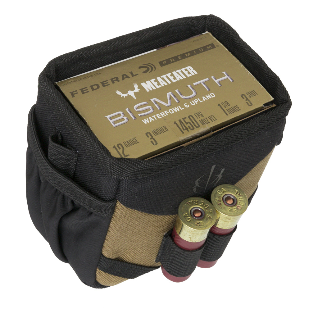 The REFLEX Shell Pouch is designed with an open top for accessibility and holds one box of ammo. It features 2 side stretch pockets with a pen sleeve and 2 shell loop holders on the front. Overall dimensions are 5″ x 5″ x 3.5″.