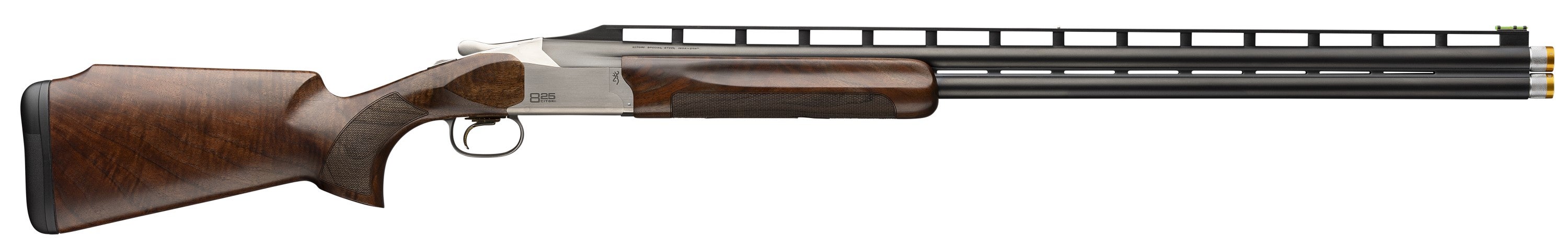 Lock in with a new Citori 825 Trap over and under shotgun. Features sculpted Grade III/IV checkered walnut buttstock with a raised Monte Carlo comb and semi-beavertail forearm with finger grooves. Engraved low-profile steel receiver with new styling engraving and a silver nitride finish. New Fire Lite 2 Mechanical Trigger Inflex II recoil pad Invector-DS chokes. High-post trap rib. - Citori 825 Trap Exclusive Features - Gloss finish Grade III/IV walnut stock with vertical grip and palm swell - Monte Carlo comb - Semi-beavertail forearm with finger grooves - High-post floating rib - Inflex II recoil pad - Triple Trigger System with three trigger shoes - HiViz� Pro Comp sight and ivory mid-bead - POI: 70/30 - Ideal for trap - Citori 825 Features - Low profile receiver with sharp modern contours - Transverse mounted full-width hinge pin maximizes strength and longevity - Tapered locking lug and recess self-adjusts for wear to keep lock up tight - Chrome chambers increase durability and corrosion resistance - Inflex II Recoil Pad (except Trap Max) - Fire Lite 2 Mechanical Trigger - Steel Shot Performance - Vector Pro Lengthened Forcing Cone - Invector-DS Choke Tube System - Back-Bored Technology