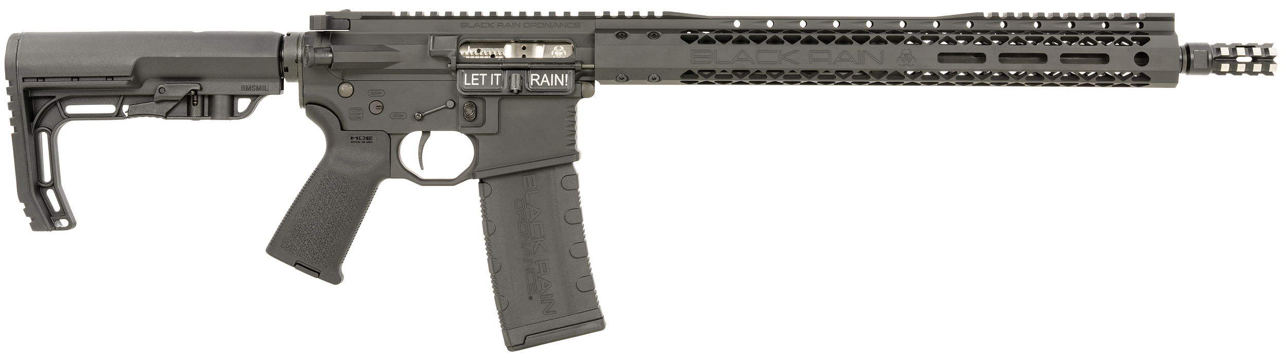 The Black Rain Ordnance Recon Series is Black Rains line of elite tactical AR rifles for the shooter who values the highest quality and craftsmanship. Built on a foundation of 7075 T6 Billet Aluminum Receivers . Features 416R Stainless Steel Nitride barrel; Nickel Boron Coated BCG; Direct Impingement; .750 Low Profile adjustable gas block; Magpul MOE Grip and MFT Minimalist stock; MLOK handguard; Fallout 15 7075 T6 Billet aluminum receiver set; 7075 T6 Billet Aluminum Charge Handle With Oversized Tac-Latch; drop in trigger and flash suppressor.