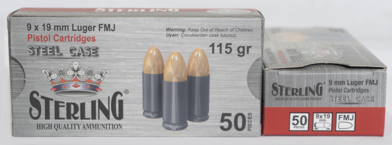 Caliber 9mm - Type FMJ - Casing Steel - Weight 115gr - Rounds per Box 50rd - Boxes per Case 30