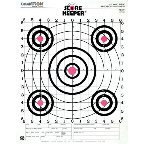 Champion Targets 45726 Score Keeper Fluorescent Orange & White 100 Yard Rifle Sight-in Targets (12 Pack)