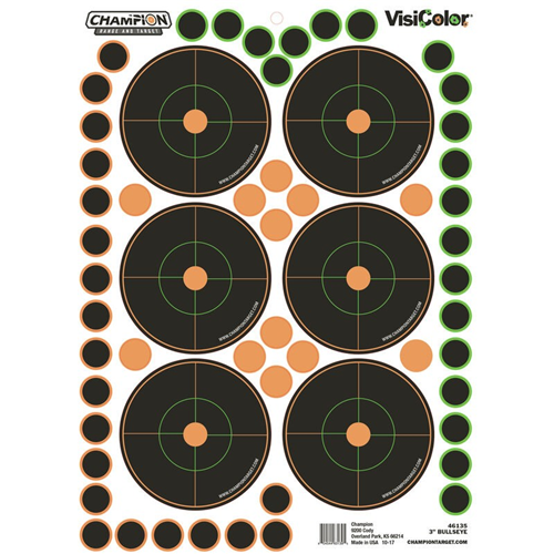 Peel-and-stick Champion VisiColor Adhesive targets create an instant shooting range. Multi-color impact halos help shooters track specific shot placement. Challenge friends with a wide variety of target options and sizes, like 50- and 100-yard sight-in targets, bullseyes and silhouettes. Plus, you can get more time out of your target with the included Pasters that lead to hours of shooting. Simply place one of the adhesive Visicolor Pasters over a shot hole to shoot at the target again! Features: Peel and stick targets and Pastersanywhere Bright impact halos track shot placement Pasters lead to hours of shooting Multiple target designs available Multiple target sizes available