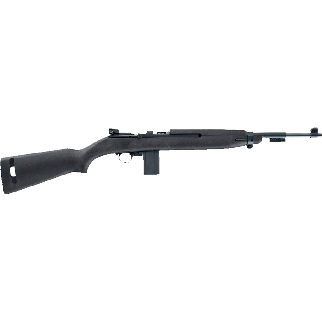 The M1-22 Carbine is a semi-auto rifle chambered for .22LR. This rifle has an 18" steel barrel, alloy receiver, and steel bolt. The receiver has a dovetail that accepts Chiappa's Picatinny rails. The stock and forend are made of a lightweight, durable polymer. This rifle comes equipped with M1 military style sights and a manual safety. Includes two 10 round magazines. Measures 35" long and weighs 5 lbs.