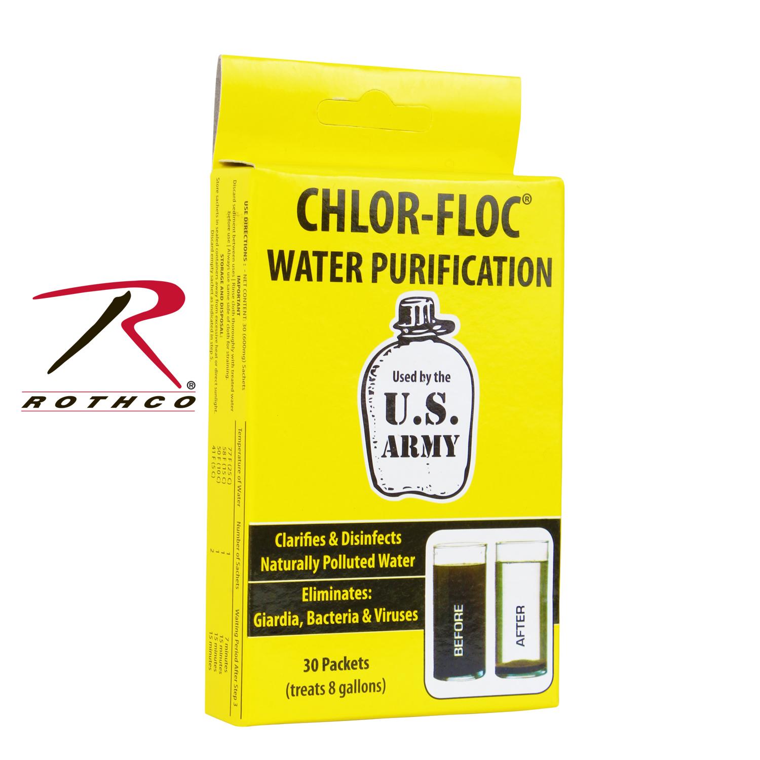 Protect your hydration with Chlor Floc active-duty Water Purification Powder. Trusted by active-duty personnel, campers, and preppers alike, these packets effectively eliminate Giardia, bacteria, viruses, and sediment from your water, ensuring safe drinking. Each box contains 30 packets, treating up to 8 gallons of water. Simply add 1 or 2 packs, depending on water temperature, to 1 liter of water. These active-duty-grade purification tablets are instrumental in the removal of sediment and are used by the U.S. military. With a shelf life of up to 3 years, you can rely on Chlor Floc for safe drinking water whenever you need it most.