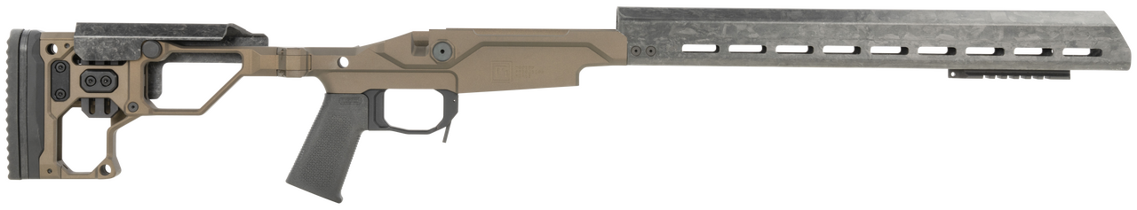 Christensen Arms Modern Precision Rifle Chassis, Desert Brown, Short Action, 17" Handguard. The Christensen Arms Modern Precision Rifle Chassis is the same ultra-lightweight adjustable system found on the Modern Precision Rifle now offered as an individual component. Crafted from 7075 billet aluminum with carbon fiber components, this chassis system features Magnelock Technology and a 17" FFT carbon fiber handguard with M-Lok compatibility. With an adjustable cheek riser and length of pull, this chassis system is perfect to start your next MPR workbench project.