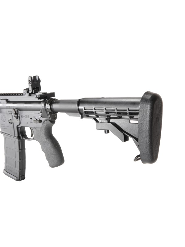 The stock is made of super strong, glass reinforced polymer and has a unique A frame shape to protect the length adjustment lever. Multiple sling attachment options are provided, which include QD sling attachment ports on both sides as well as a sling slot. A removable rubber butt pad comes with the stock which provides secure, non-slip mounting and reduces felt recoil. The stock offers a precise fit to mil-spec (1.146 diameter) buffer tubes for smooth length adjustment.