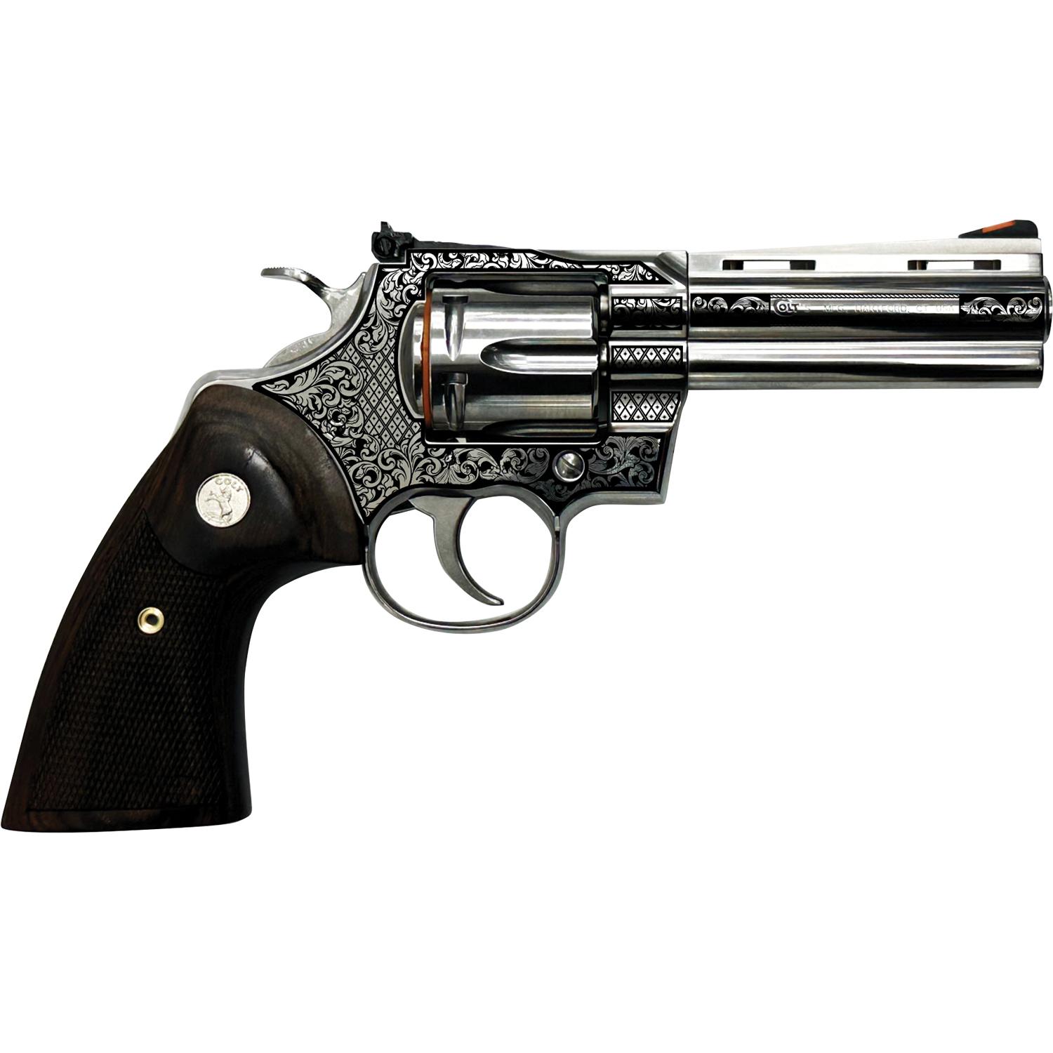 Building on Colt’s Snake Gun legacy the legendary double-action revolver is now available in stainless steel in 3" 4.25” and 6” barrel lengths. The 2020 Python features modern stainless steel alloys and a re-designed rear sight. Thirty percent more steel beneath the rear adjustable target sight gives you a stronger revolver and more robust shooting experience. A recessed target crown user-interchangeable front sight and Walnut grip with the iconic Colt medallion make this a gun you’ll want to shoot AND show off. The Python is chambered in .357 Magnum and also accommodates 38 Special cartridges.