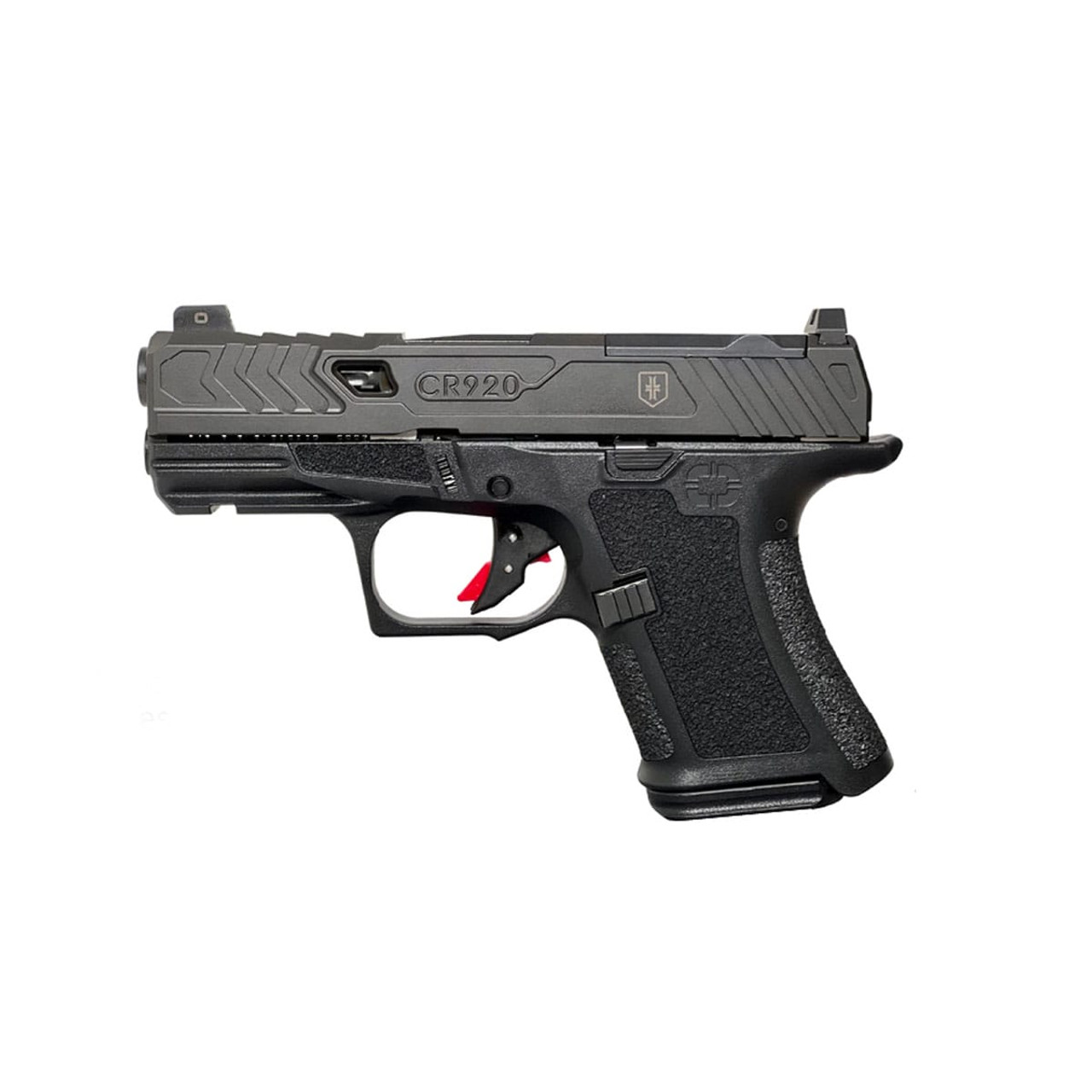 The CR920P features a patent-pending mechanism for the attachment of the compensator. Created to be as size efficient as possible, the QD design allows the CR920P to fit into a wide array of commercially available holsters. The design employs a proprietary 3-lug muzzle that works in combination with a centrally located locking lever in the body of the comp.Despite its small size, the all-steel CR920P compensator is amazingly effective at limiting muzzle rise during rapid fire. Many shooters find the CR920P to be as pleasant to shoot as other, much larger pistols in the Shadow Systems lineup, and certainly more controllable than competing compensated subcompacts.