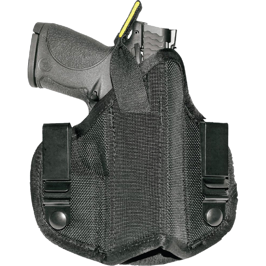 The Eclipse Holster is a very low-profile, extremely versatile inside the waist band and outside the waist band holster. Its wide platform makes the holster both secure and stable. Other features include 1680 denier ballistic nylon, memory-type foam laminate most to custom fit your weapon and 3-D technology so the holster will not collapse when the pistol is removed.
