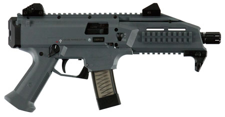 This CZ Scorpion sub-gun is a blowback-operated semi-auto in 9mm with a 7.75" cold hammer-forged barrel. Its muzzle features 1/2x28 threads hidden underneath the factory flash hider, meaning users can fit either 1/2x28 or 18x1 accessories to the muzzle. Equipped with low-profile sights, its rear sight has four different aperture sizes for everything from close quarters to way out there. The sights ride on an 11" Picatinny rail perfect for mounting optics. It has a polymer frame with a QD sling swivel pocket integrated into the rear sling attachment point. Simple and reliable, the Scorpion not only has ambidextrous controls, its non-reciprocating charging handle is swappable and trigger reach is adjustable. This model has an Battleship gray metal finish.