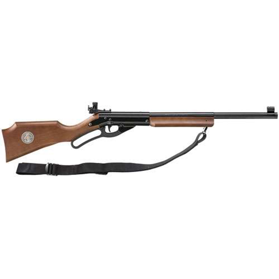 Youth Single Shot- Muzzle-Loading Air Powered BB Rifle - Spring Operated Lever Action Power Plant - Caliber: .177 BB Only (does not accept pellets) - Smooth Bore Steel Barrel - Competition Sights: Hooded Front Sight with Adjustable Rear Peep Sight - Maximum Range: 152 yards - Velocity: 240 fps - Manual Safety - Hardwood Furniture with Monte Carlo Stock - Embedded 'Official Shooting Education BB Gun' by Daisy Medallion - Length of Pull: 13.25 - Black Finish - Overall Length: 36.25 - Weight: 3.1 lbs