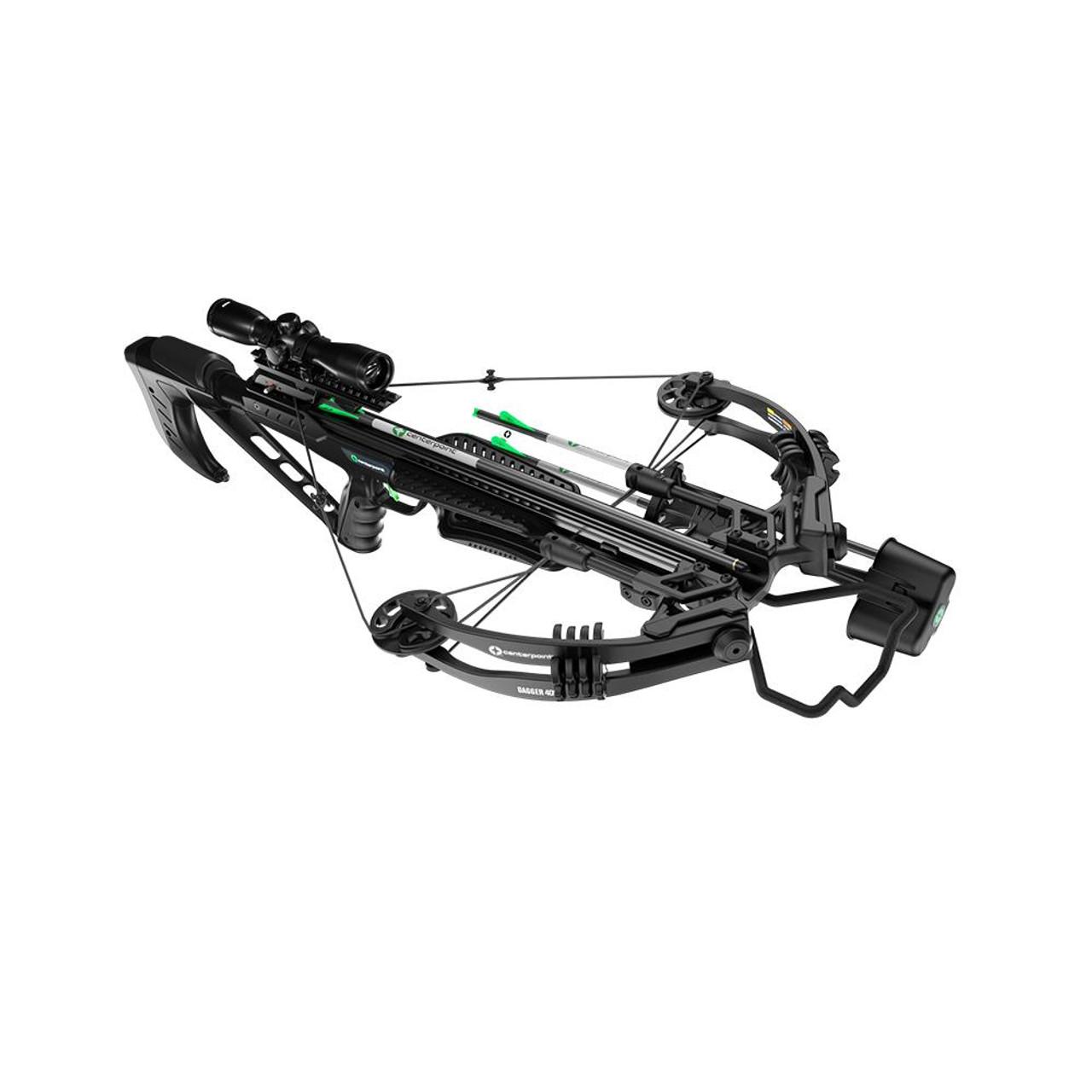The Dagger 405 is outfitted with the best stealth system on the market. CenterPoint Archery’s Whisper Silencing System technology takes the major points of vibration and stops it in its tracks. From limb dampeners to string silencers this stealth black crossbow has the tech to prevent your target from reacting until it’s too late. Its hunter-designed frame allows you to comfortably maneuver around rugged terrain and rest the bow in perfect line with your sight and the target. This CenterPoint package features include: