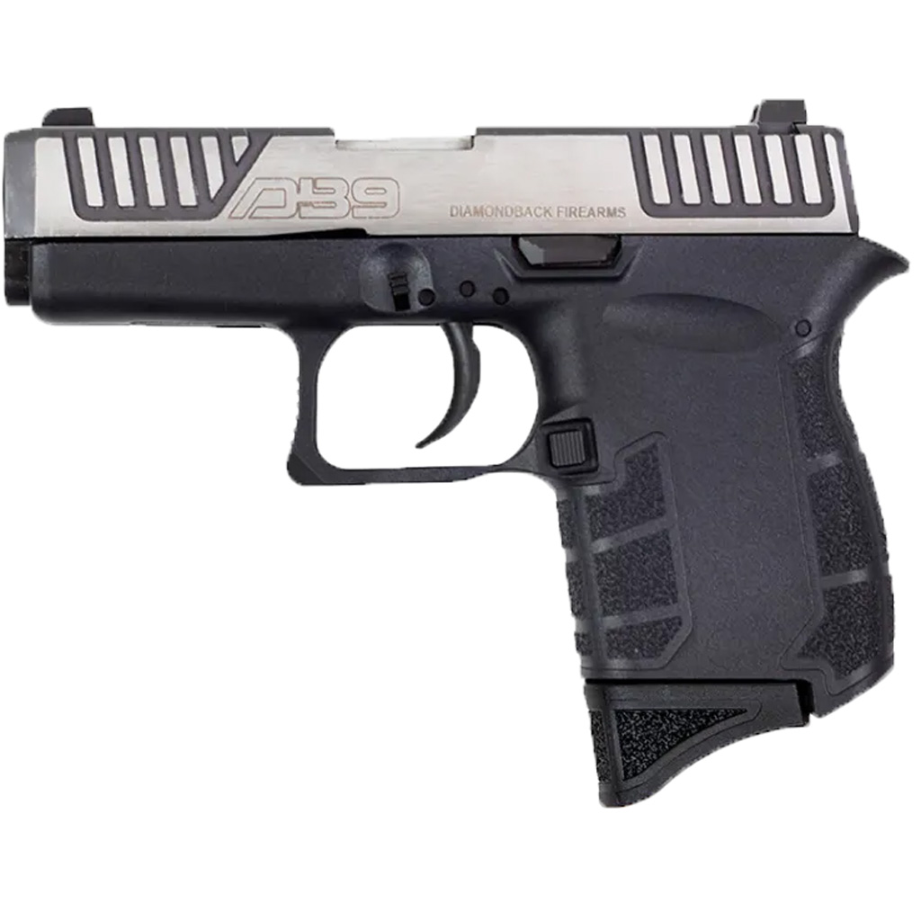 This 9mm micro-compact frame boasts a 3.1-inch stainless steel barrel with a lightweight design at just 13.4 ounces with an empty magazine. It's outfitted with a polymer frame for comfortable handling and three-dot Glock-compatible sights for quick target acquisition. The pistol also features a short reset trigger and a striker-fired double action mechanism, ensuring a steady 5.5 lb trigger pull. With a 6+1 round capacity and an all-steel captured recoil system, the DB9 Gen IV provides reliability in a size that fits snugly in a purse or pocket.