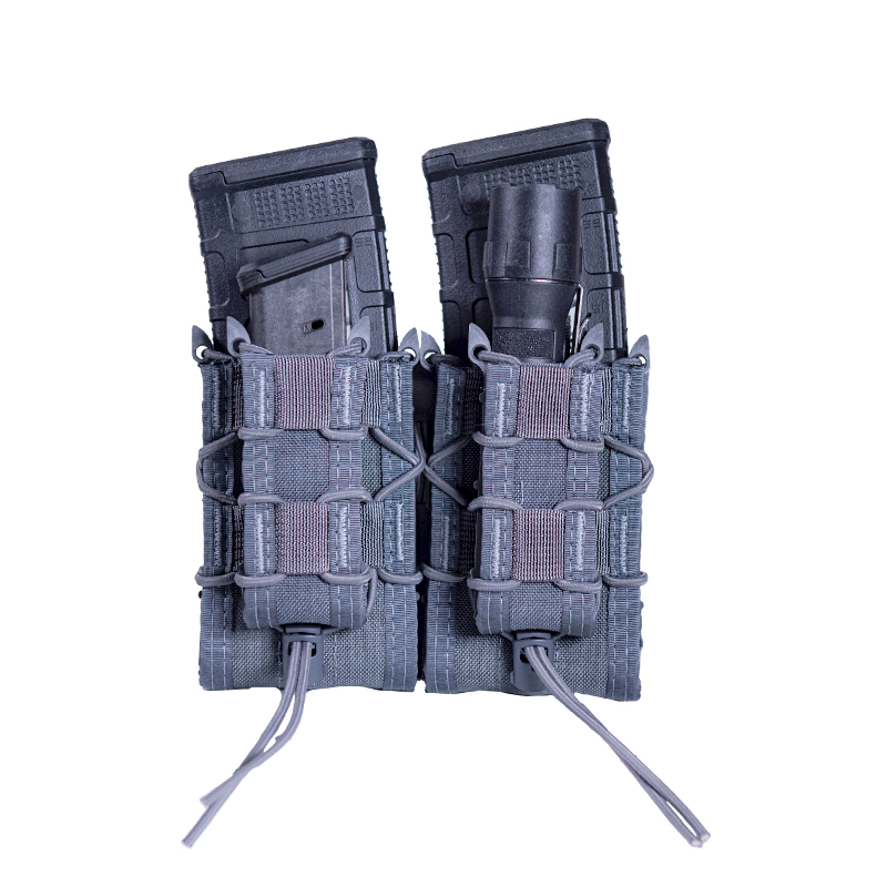 The Double Double Decker TACO combines our TACO and Pistol TACO into one secure unit, while adding two additional pouches for magazines and other accessories. This unique pouch can securely hold a large combination of magazines, flashlights, and similarly sized accessories. The Double Double Decker TACO pouch is made of heavy-duty nylon, shock cord and High Speed Gear's all new injection-molded polymer brackets.