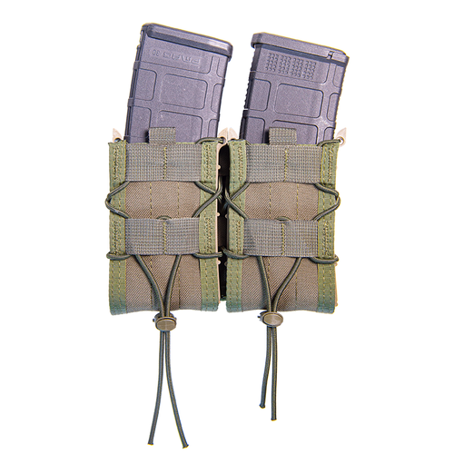 This unique pouch is constructed from injection-molded polymer brackets, heavy-duty nylon and shock cord lacing to both expand and lock just about any magazine in place. Securely holds most rifle magazines, magazines deploy easily and silently on demand. Also fits certain radios, flash bangs, and smoke grenades. Strip of loop fastener sewn inside for additional contact and grip.