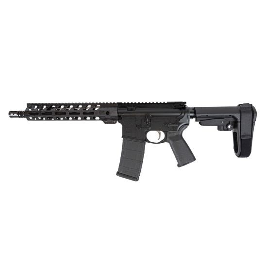 Product Details FeaturesBarrel: Chrome Moly steel phosphate coated barrel. Chambered in 5.56 NATO, with a 1/7 twist, M4 barrel extension, and a carbine-length gas system. Barrel is finished off with a DPMS 10.5" Lightweight M-Lok rail, low-profile gas block, and A2 flash hider.Upper: Forged 7075-T6 A3 AR upper is machined to MIL-SPECS and hard coat anodized. Uppers include forward assist and dust cover. These uppers are made for us right here in the USA by a mil-spec manufacturer.Bolt: Full-auto profile bolt carrier group. Shot-peened, mil-spec Carpenter No. 158 steel bolt. Gas Key Hardened to USGI Specifications, Fastened with Grade 8 screws, and Staked Per Mil-Spec.Lower: These forged lowers are quality made using 7075-T6 aluminum and are marked "MULTI" for caliber. Finish is hard coat anodize. Finished with a Magpul MOE Grip, SB Tactical SBA3 Pistol Stabilizing Brace, and 6 position 7075 buffer tube. The fire control group is a DPMS Panther Polished Trigger (PPT), single-stage assembly. DetailsBarrel Length: 11.5"Barrel Profile: A2Barrel Steel: Chrome Moly VanadiumBarrel Finish: PhosphateChrome Lining: NoMuzzle Thread Pattern: 1/2" x 28Twist Rate: 1 in 7"Barrel Extension: M4Gas System Length: CarbineDiameter at Gas Block: .750"Gas Block Type: Low-Profile Gas BlockMuzzle Device: A2 -styleReceiver Material: Forged 7075-T6Receiver Type: M4Handguard Type: DPMS 10.5" Lightweight M-LokBolt Material: Carpenter 158 SteelBolt Carrier Profile: Full AutoFire Control Group: Panther Polished Trigger (PPT)Grip: Magpul MOE Grip, BlackBuffer Tube: 7075 T6 AluminumAdjustment: 6 PositionPistol Brace: SB Tactical SBA3 Pistol Stabilizing Brace