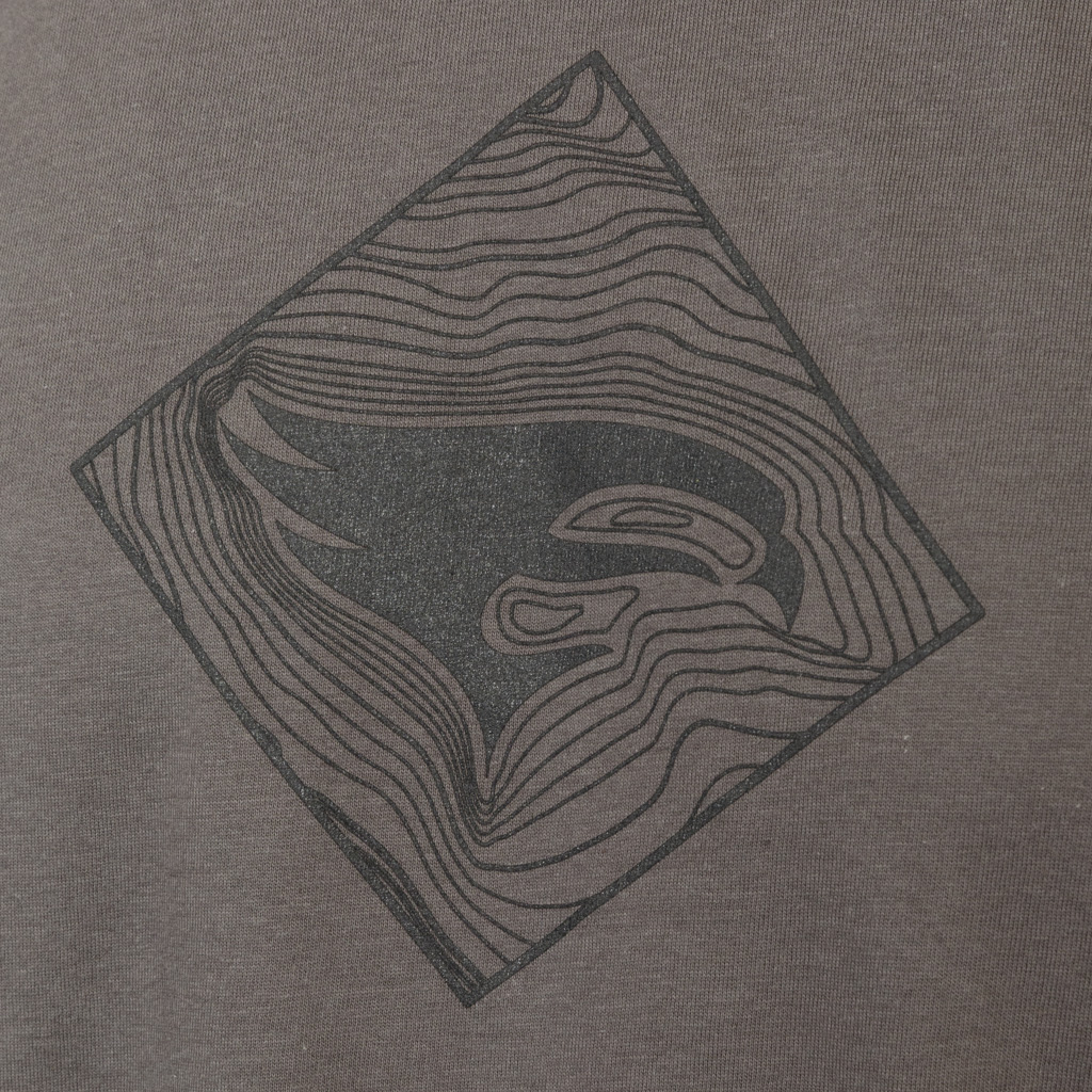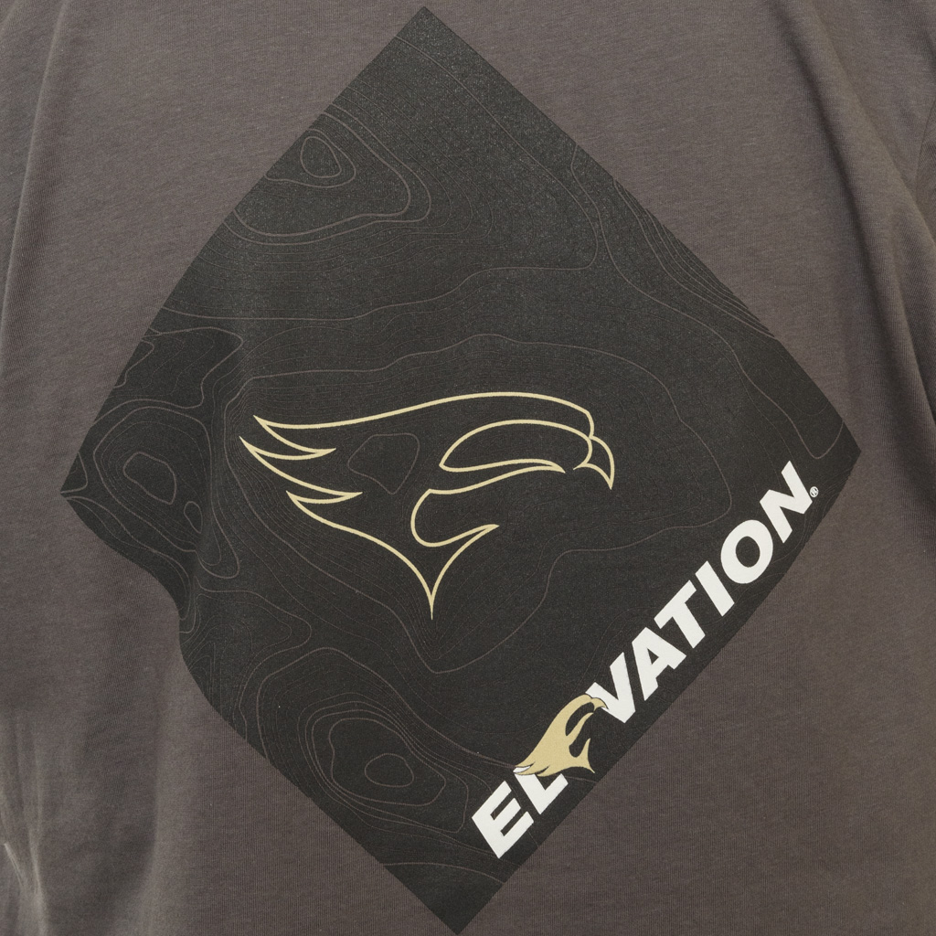 Elevation Topo Tee presents the Elevation peregrine falcon amidst a custom topographic map. The Tee is a CVC High quality fabric (60% Combed ring-spun cotton/ 40% polyester) and machine washable.