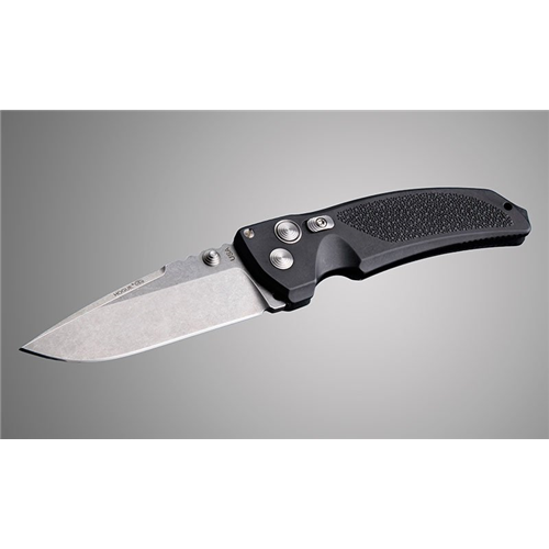 The EX-03 features a one-piece frame, which is made from a high-glass content reinforced polymer. Hogu's in-house injection molding capabilities allow us to create a one-piece frame with an integrated skull crusher. The stainless steel bolster plates are actually molded into the frame prior to assembly, assuring a precise action. The EX-03 offers customers a price-point knife without sacrificing any of the Hogue Extreme Knives philosophy.