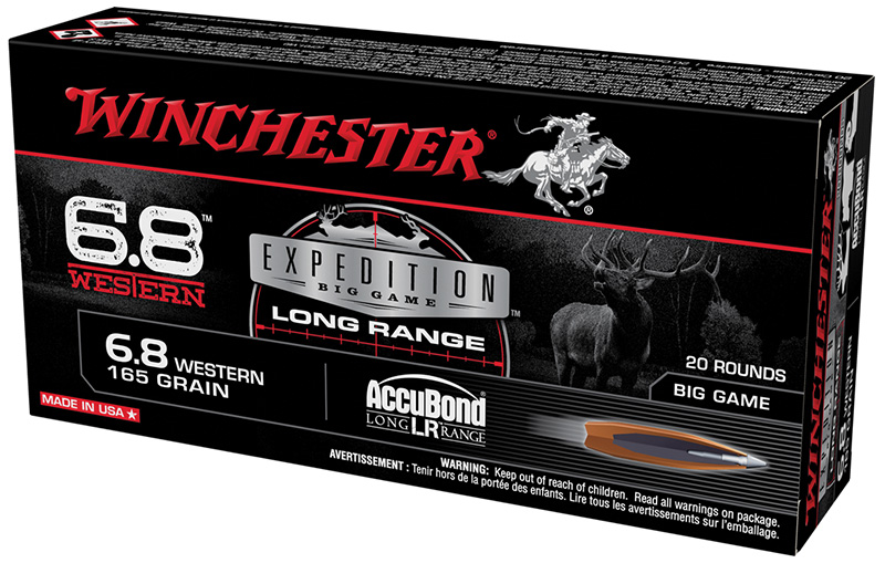 Winchester Ammunition, MFG# S68WLR, UPC: 020892229730, UOM: BOX, Expedition Big Game, 6.8 Western, 165 Grain, AccuBond LR, 20/box, WINC, WINCAM30, WINCAMALL, AM30, AMALL, Case: 10