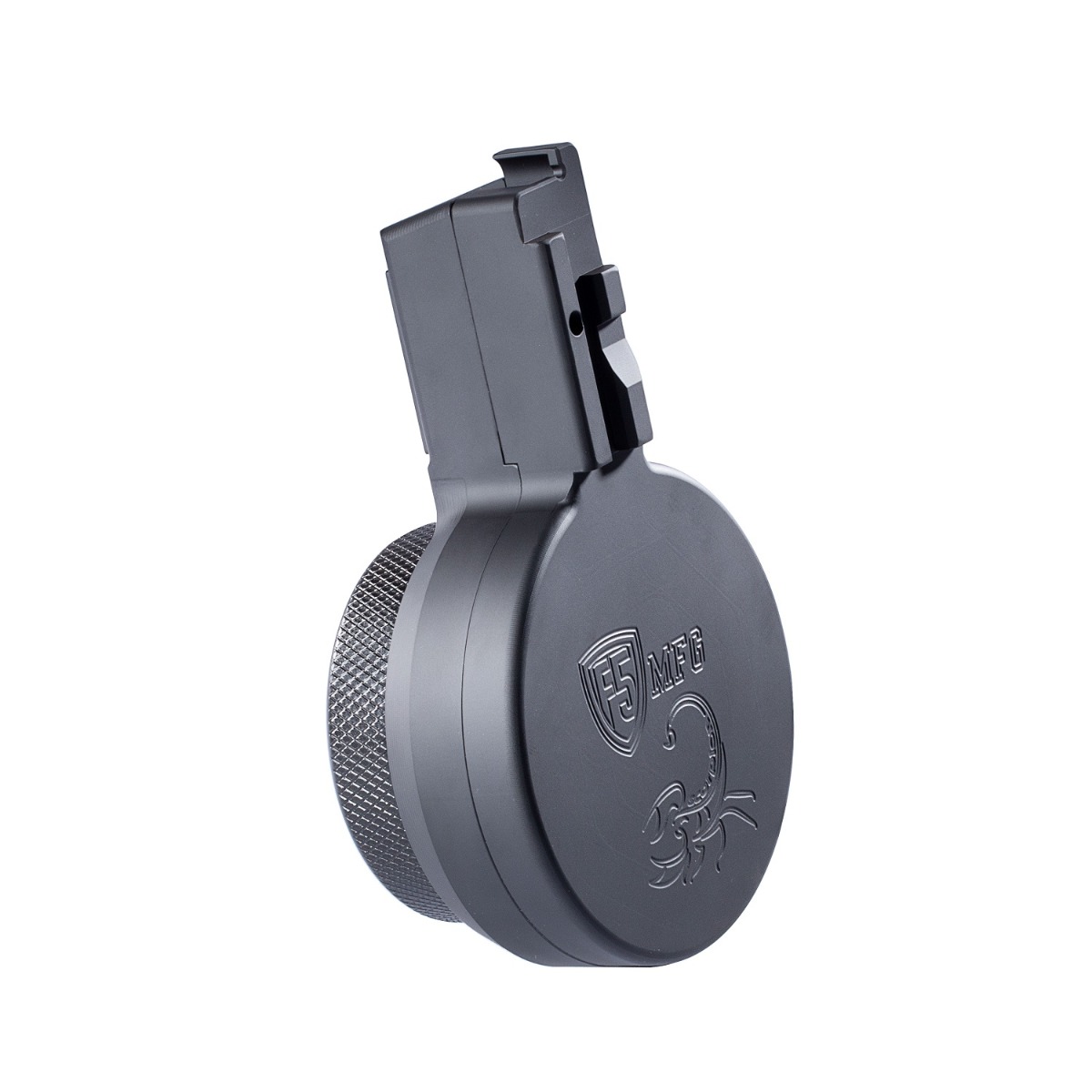 F5 MFG CZ Scorpion 9mm 50 Round Billet Aluminum Drum Magazine - Armor Black | Engraved with Scorpion