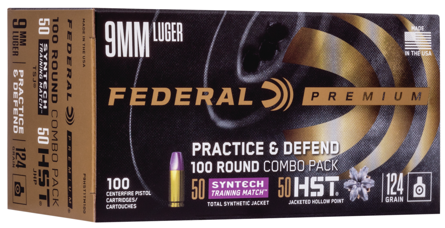 Federal Practice & Defend Packs include 50 HST Personal Defense loads and 50 Syntech Training Match rounds. All produce identical velocities, trajectories and point of impact for the most realistic training and utmost protection.