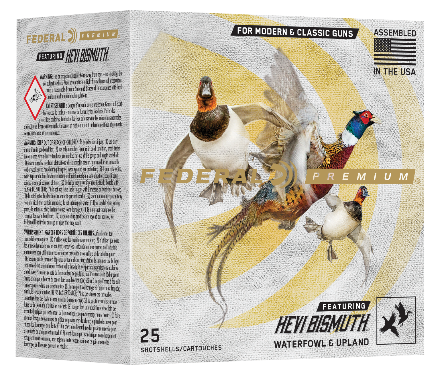 The HEVI-Bismuth hits both upland birds and waterfowl with the power of 9.6 g/cc density pellets. Sourced from Federal's partners at HEVI-Shot, HEVI-Bismuth shot is 22 percent denser than steel, delivering more lethal energy downrange. Launched by the FLITECONTROL FLEX wad, bismuth pellets pattern consistently, and their metallic properties make them safe in both modern and classic shotguns.