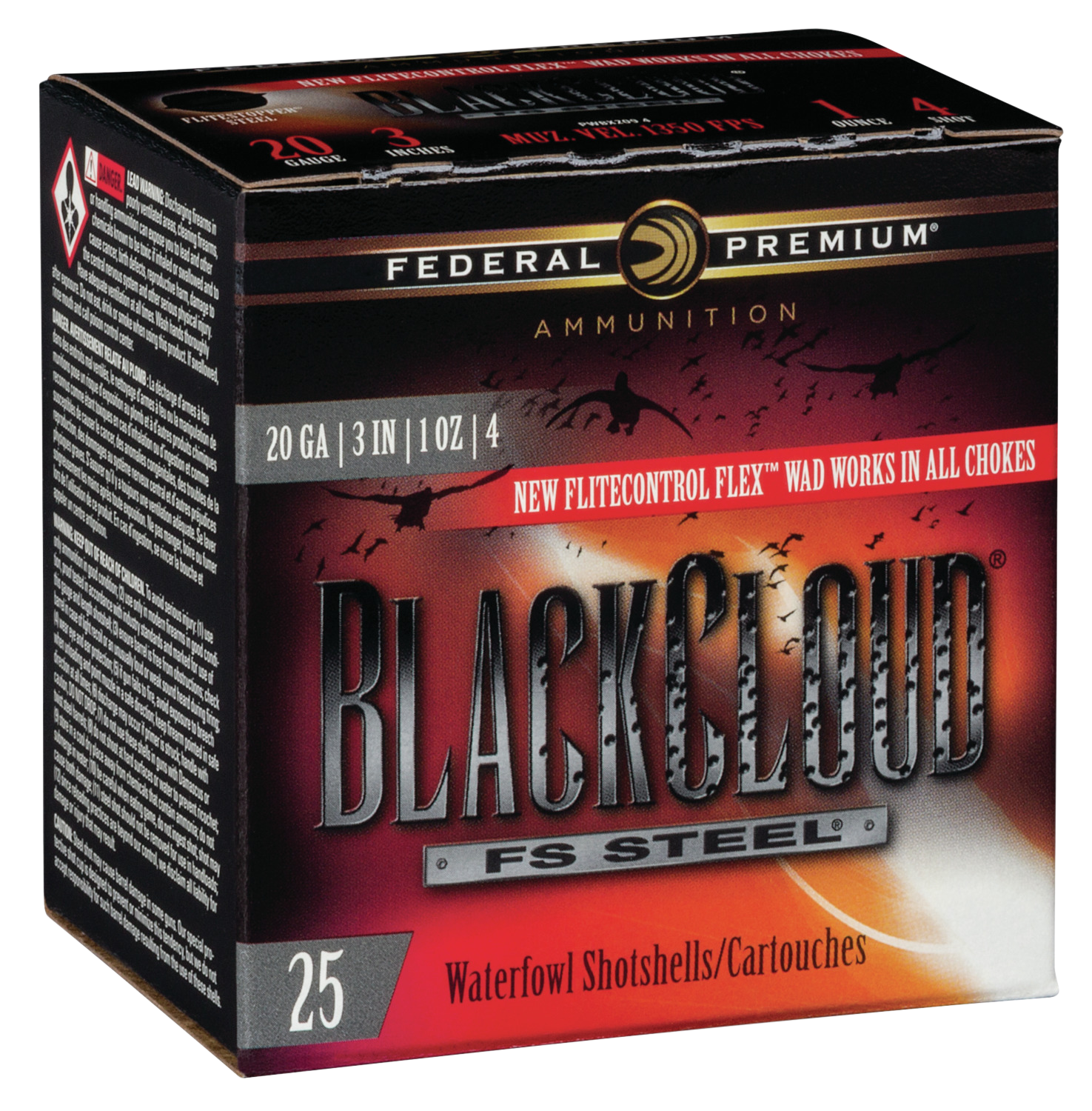 Black Cloud FS Steel is now equipped with the FLITECONTROL FLEX wad to deliver improved pattern density and consistency through both ported and standard waterfowl chokes. The wads redesigned rear-deploying petals and side-mounted vents stimulate the payload for separation from the wad at the ideal moment for dense, deadly patterns. Plus, the high-performance primer and clean-burning, temperature-stable propellant significantly decrease residue in the barrel.
