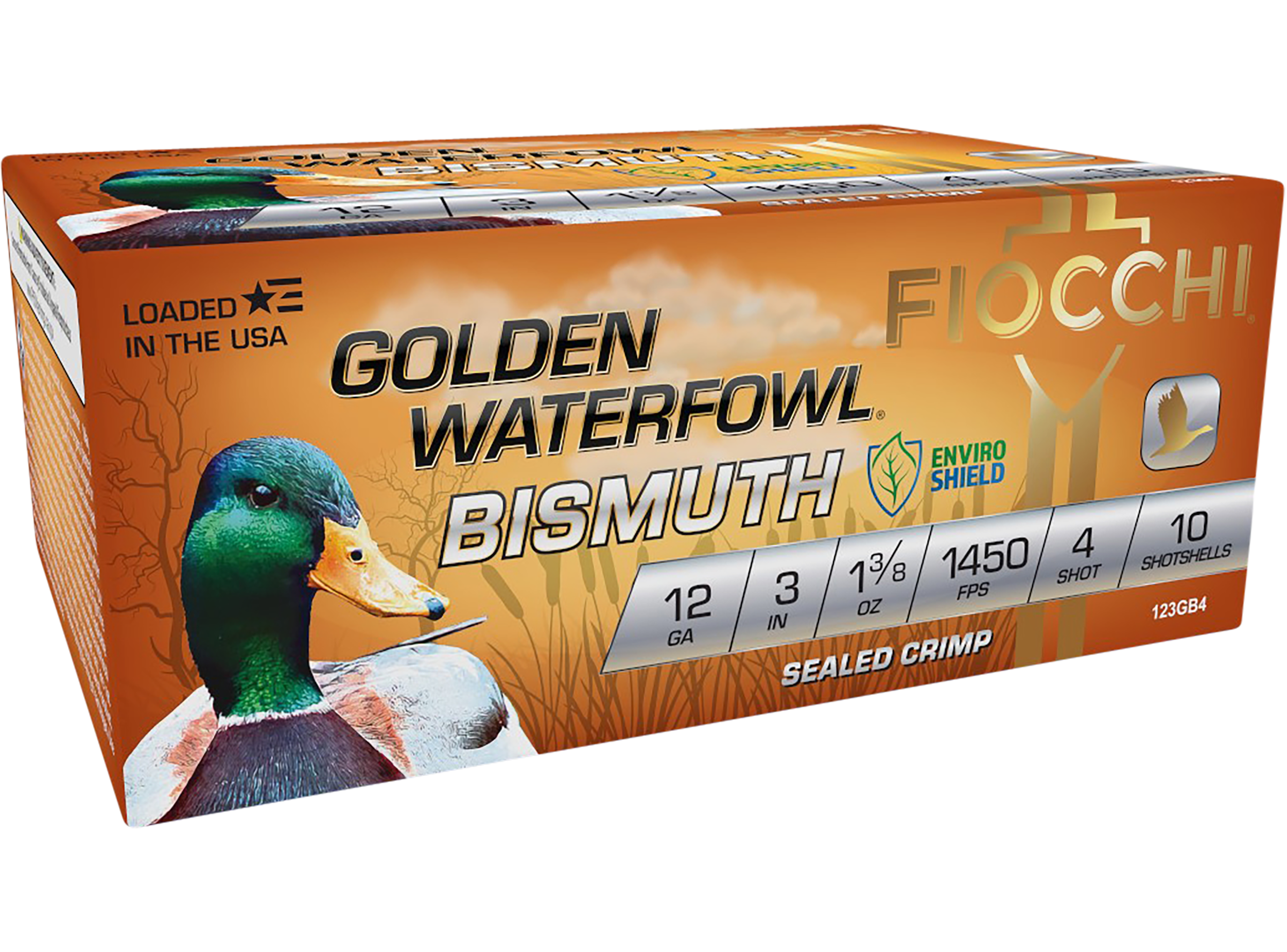 Non-toxic Golden Waterfowl Bismuth, flaring waterfowl wont stand a chance. The high velocity paired with greater energy transfer, dense patterns and exteneded ranges makes for the deadliest wing shooter. Fiocchi uses high density 9.75g/cc bismuth in a precision loaded, moisture resistant, sealed hull that will provide the best performance shot after shot.