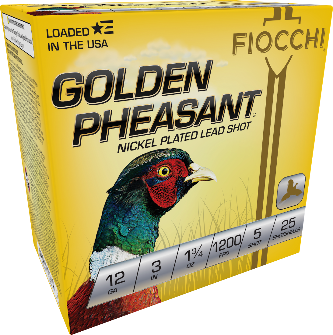 The Fiocchi Golden Pheasant loads feature nickel-plated shot that ensures hard, round pellets that fly straighter to the target and penetrate deeper.