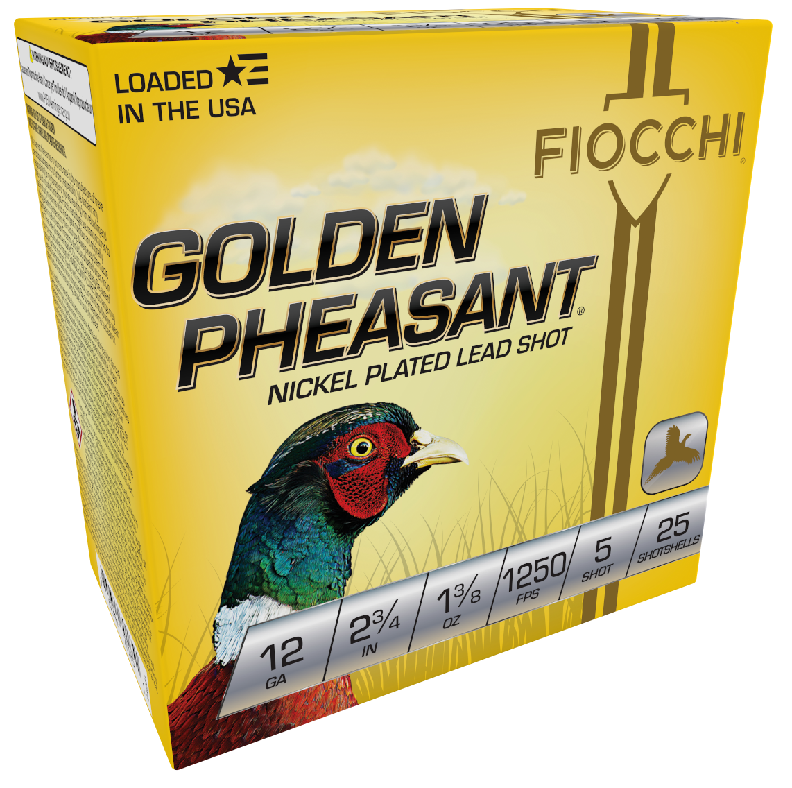 The Fiocchi Golden Pheasant loads feature nickel-plated shot that ensures hard, round pellets that fly straighter to the target and penetrate deeper.